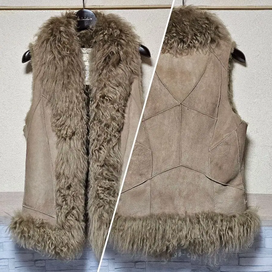 goa 베이지 칼간 라무 퍼 베스트 양가죽