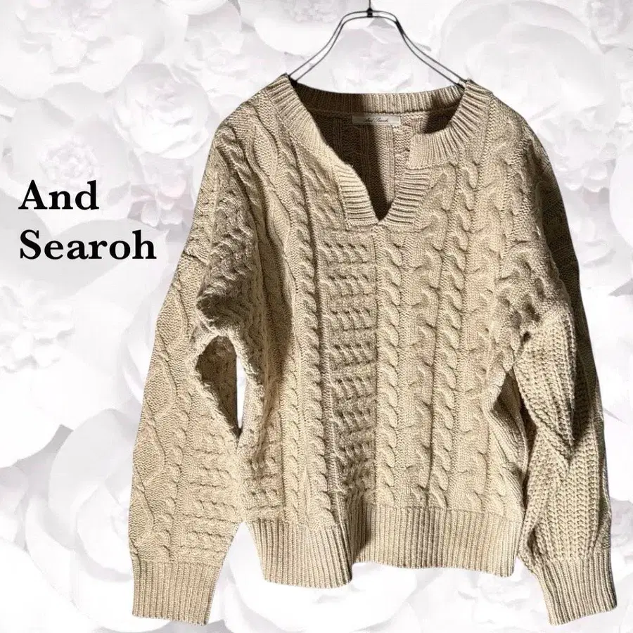 [앤드서치] 니트 스웨터 [M] 베이지 케이블 짜임 루즈핏 V넥