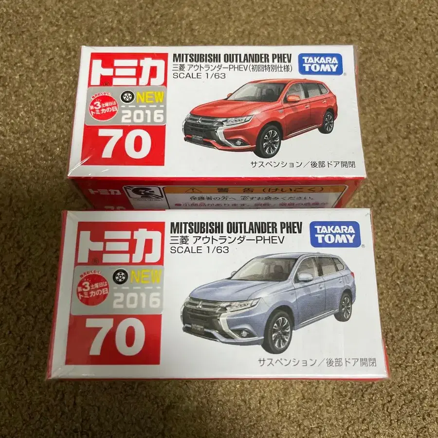 No.70 미쓰비시 아웃랜더 PHEV 초회 특별 사양 미개봉 새상품 1대 No.70 미쓰비시 아웃랜더 PHEV 일반 버전 신차 씰 포함 미개봉 새상품 1대 - 모델명: MITSUBISHI OUTLANDER PHEV - 스케일: 1/63 - 색상: 파랑, 빨간색 - 제조사: 타카라토미 방문해 주셔서 감사합니다. 유파켓 포스트 mini의 익명+추적 포함으로 발송합니다. 사이즈 오버 시 다른 익명+추적 포함 방법으로 발송합니다. 간편 포장이 되므로 찌그러짐 방지를 위한 클리어 케이스 이용 시 소형 토미카 100엔, 대형 토미카 200엔으로 추가해 드립니다. 세트 구매 시 2대째부터 추가 1대당 100엔 가격 인하해 드립니다. 묶음 구매 요청 시 먼저 댓글 부탁드립니다. 판매 후 1개월 이상 경과한 상품은 단품으로 가격 인하가 가능할 수 있습니다. 10% 이상 가격 인하, 1111엔 미만 판매는 하지 않으니 양해 부탁드립니다. 그 외 질문이나 요청 사항이 있으시면 언제든지 편하게 부탁드립니다. 즉시 구매 가능