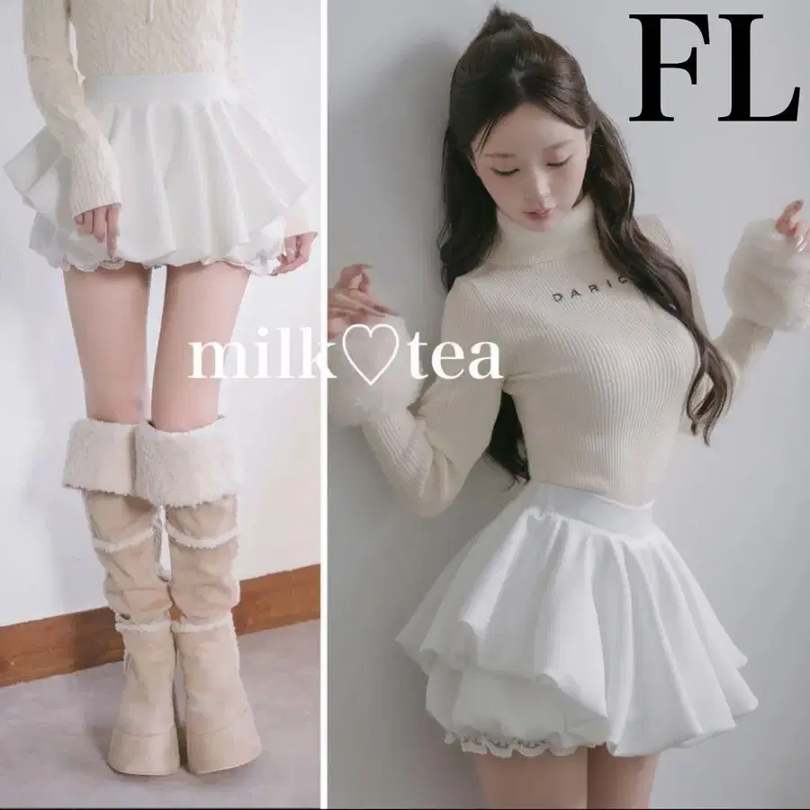 택 포함 새상품 다리치 화이트 FL 볼륨 벌룬 미니 스커트
