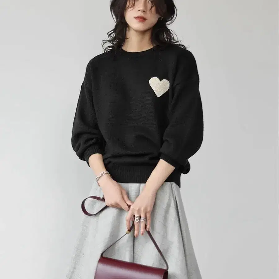 엘프랭크 니트 하트 자수 니트 풀오버 여성용
