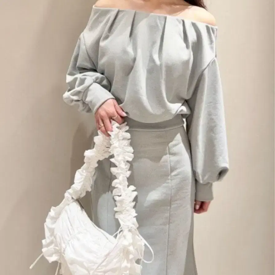 SNIDEL 오프숄더 턱 맨투맨 스나이델