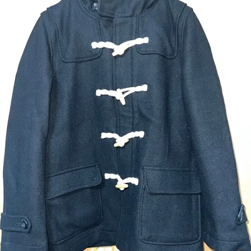 네이비 더플 코트 후드 부착
