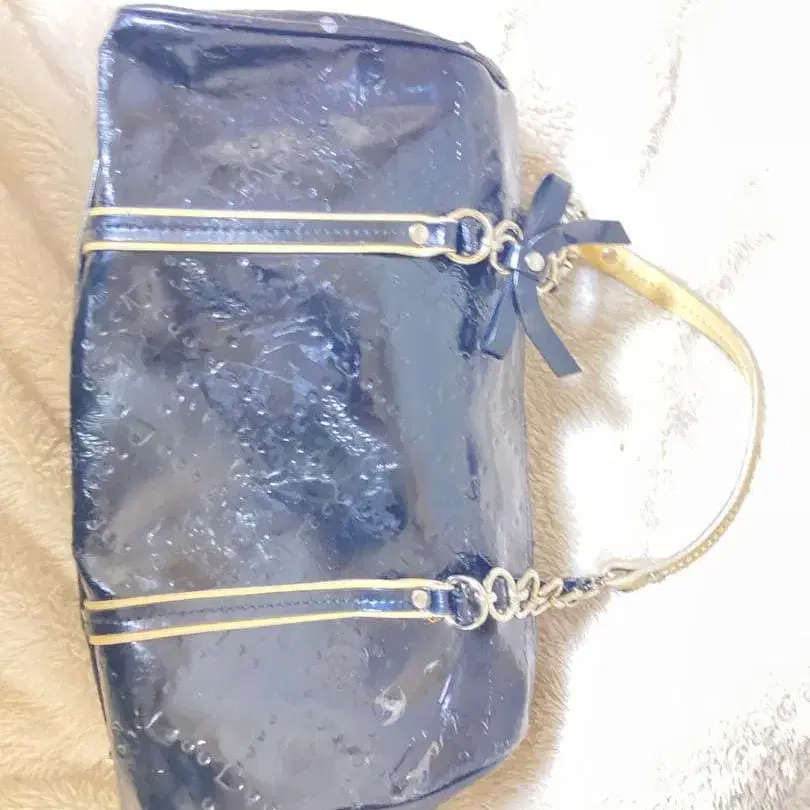 네이비 합성 피혁 토트백