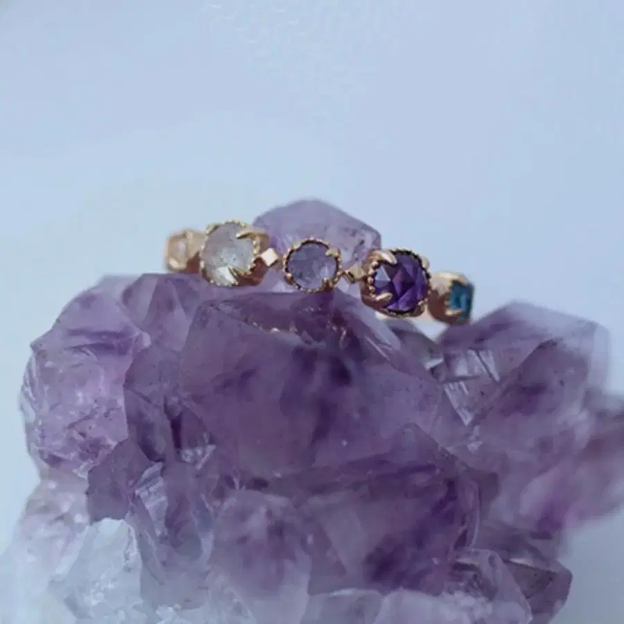멀티 반지 아커, 아가트 좋아하시는 분들께 돌은 왼쪽부터 1 화이트 크리스탈 2 래브라도 라이트 3 코디에라이트 4 자수정 5 런던 블루 토파즈 1 화이트 크리스탈: 맑고 세련된 외관, 기품 있는 빛깔이 착용감에 화려함을 더하며, 정화와 에너지 활성화를 가져옵니다. 2 래브라도 라이트: 신비롭고 다채로운 광택이 있으며, 다른 각도에서 보면 색채가 변하여 독특하고 매력적인 외관을 선사합니다. 3 코디에라이트: 부드럽고 온화한 색감이 느껴지며, 기분 좋은 분위기를 자아내고 정신적인 안정감을 가져다줍니다. 4 자수정: 아름다운 보라색이 인상적이며, 정신적인 평온과 직관력 향상을 지원하고, 우아한 분위기를 연출합니다. 5 런던 블루 토파즈: 깊은 블루가 매력적이며, 지성과 차분함을 상징하고, 착용감에 고급스러운 빛깔을 더합니다. 이 돌들을 조합한 멀티 반지는 아름다움뿐만 아니라, 각자의 파워를 결집하여 균형과 조화를 테마로 한 매력적인 액세서리입니다 ♪ 호수 - 11호 silver925