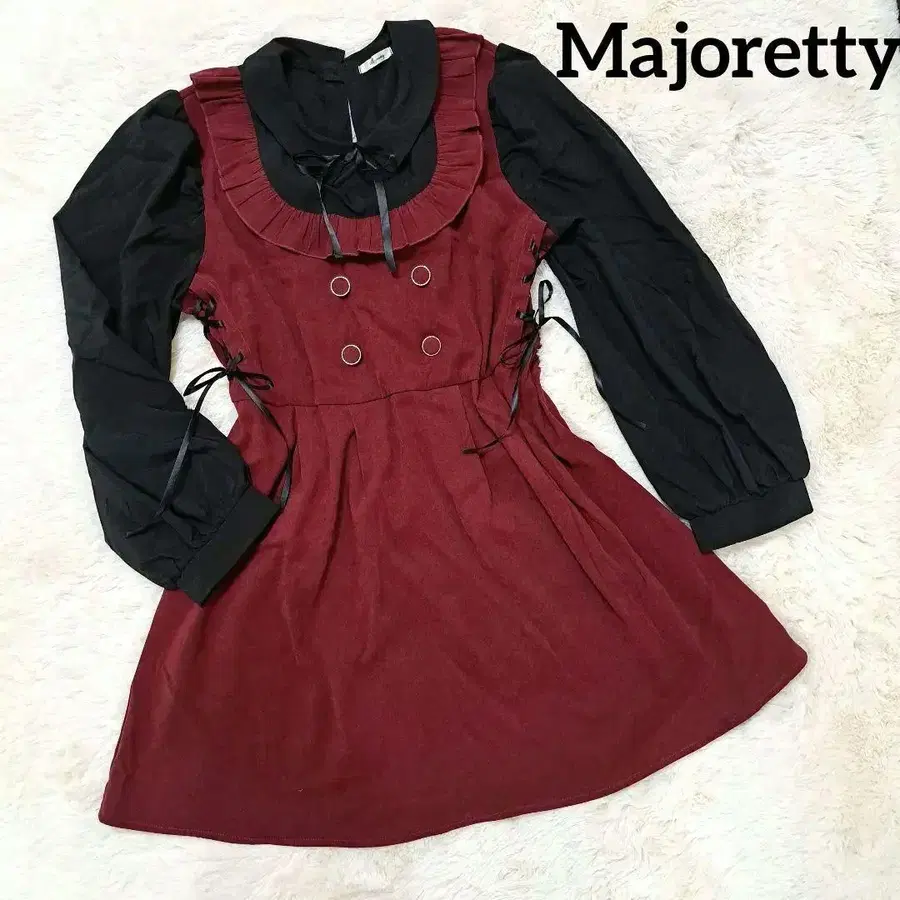 [ 새상품급 ] 와인 레드 보르도 4L 원피스 지뢰 양산 리본 프릴