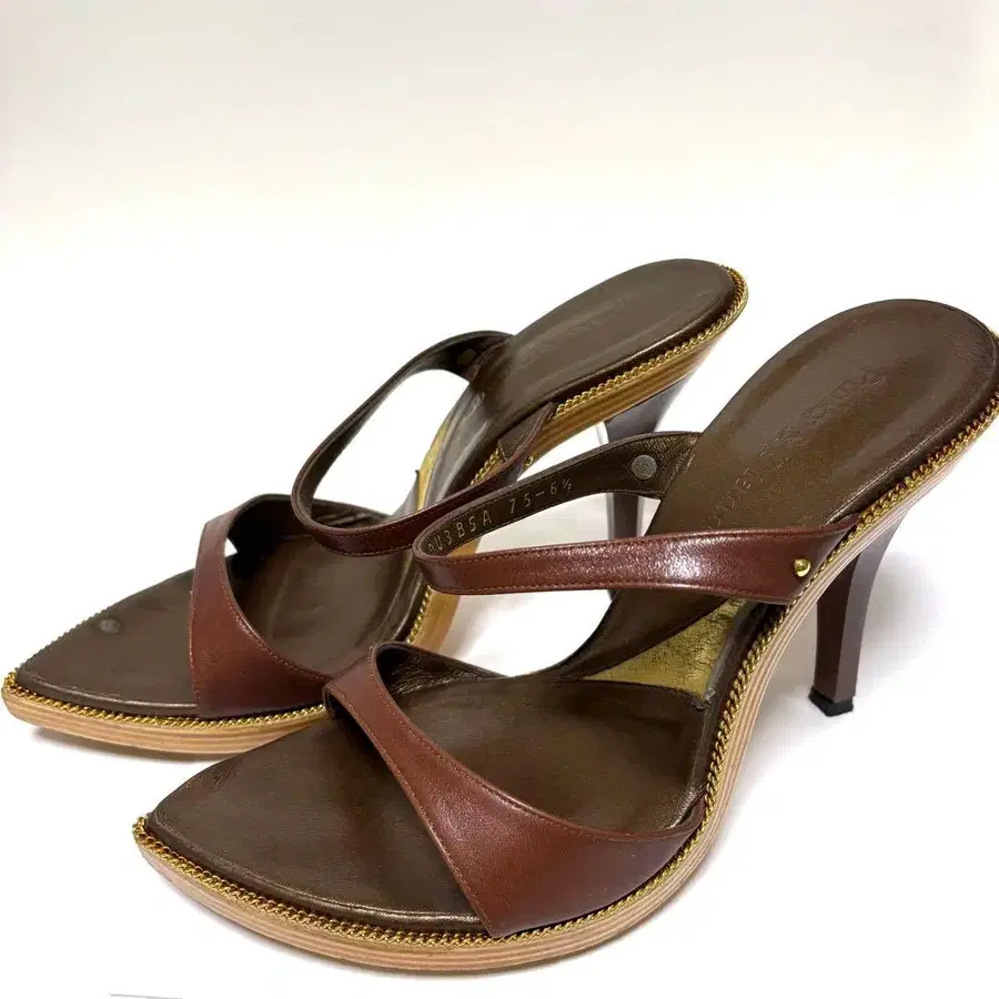 핑키&다이앤 샌들 뮬 가죽풍 브라운 6하프 하이힐