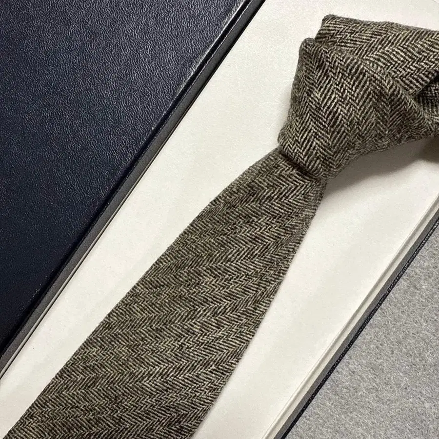 새상품급 카미차니스타 넥타이 울 브라운 두꺼운 원단