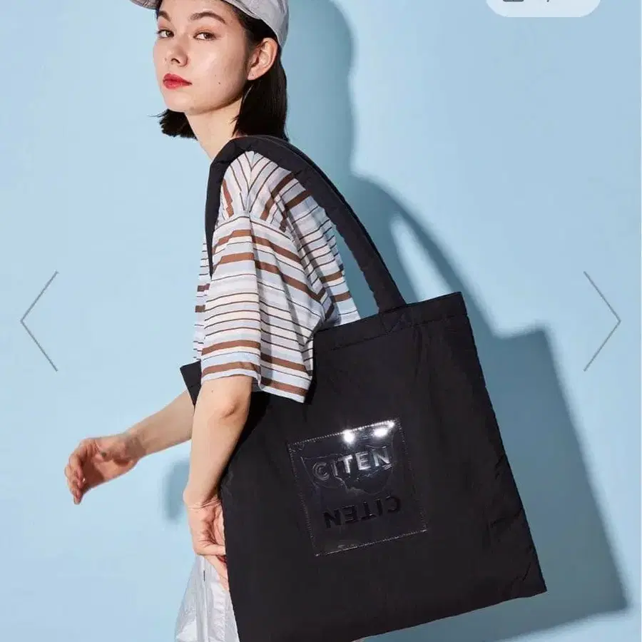 [CITEN] 패디드 클리어 로고 토트백 블랙