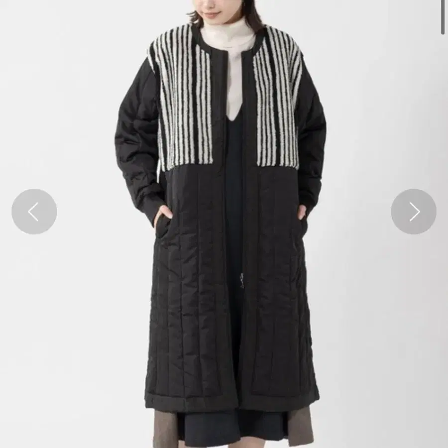 PEXWEAR / 펙스웨어 자카드 퀼팅 노카라 코트