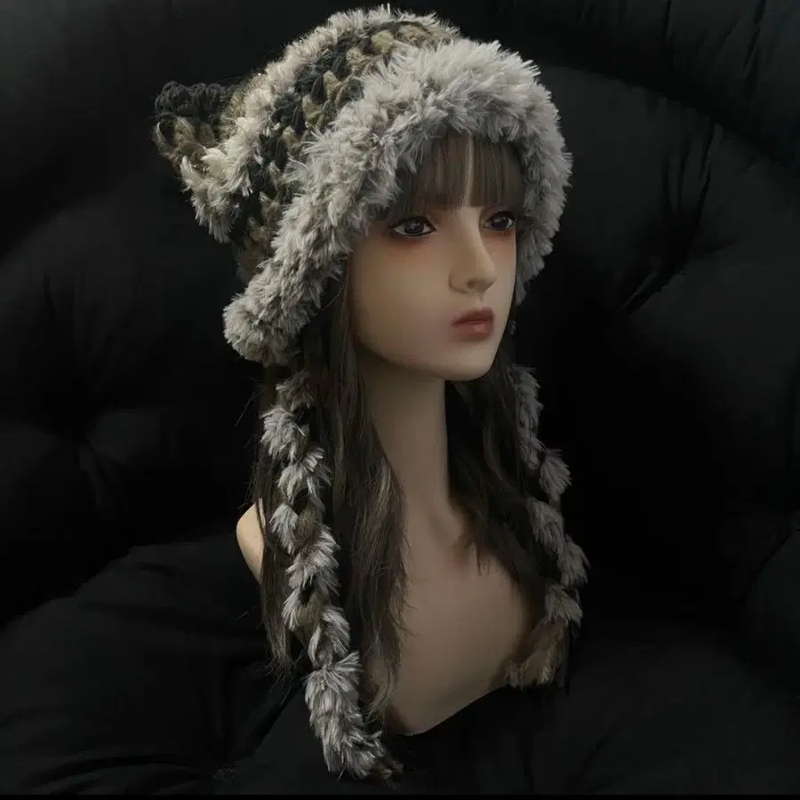 73 핸드메이드 고양이 귀 니트 모자 끈 포함 복슬복슬 고귀한 고양이풍