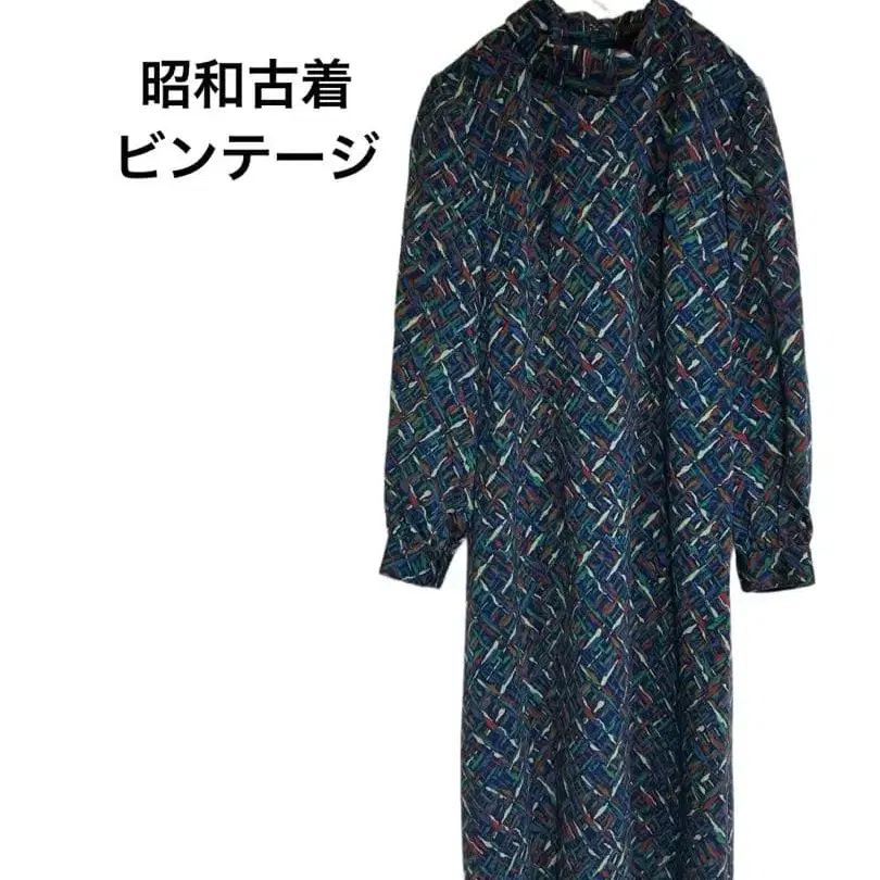 쇼와 구제 의류 기하학 패턴 하이넥 긴팔 원피스 레트로 레어