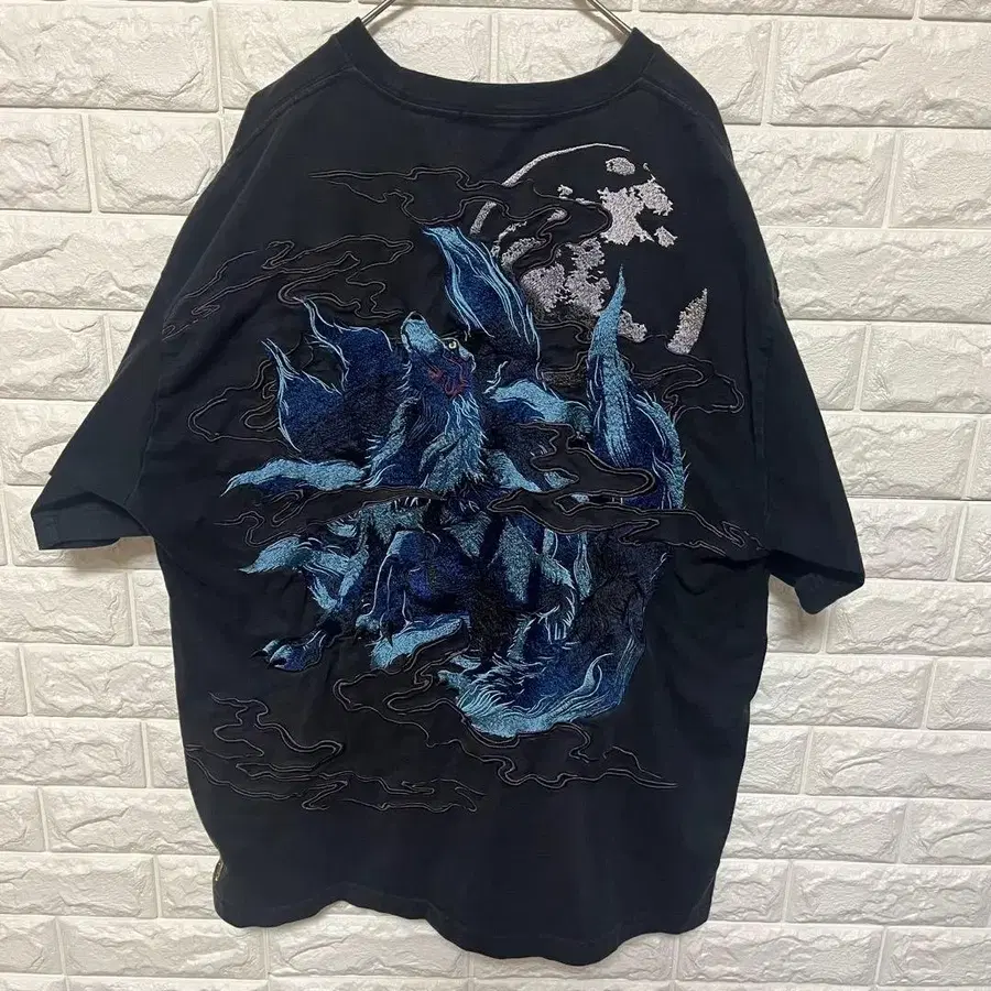 카라쿠리타마시 반팔 셔츠 T셔츠 여우 자수