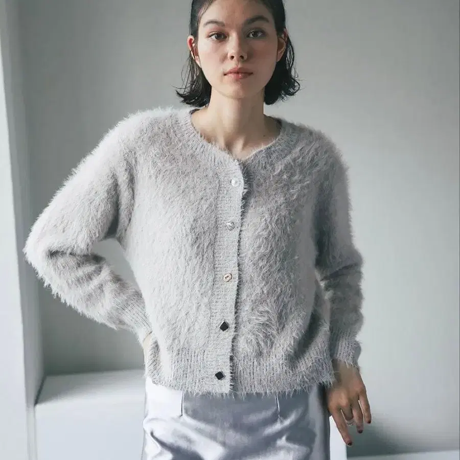 숏 샤기 니트 가디건
