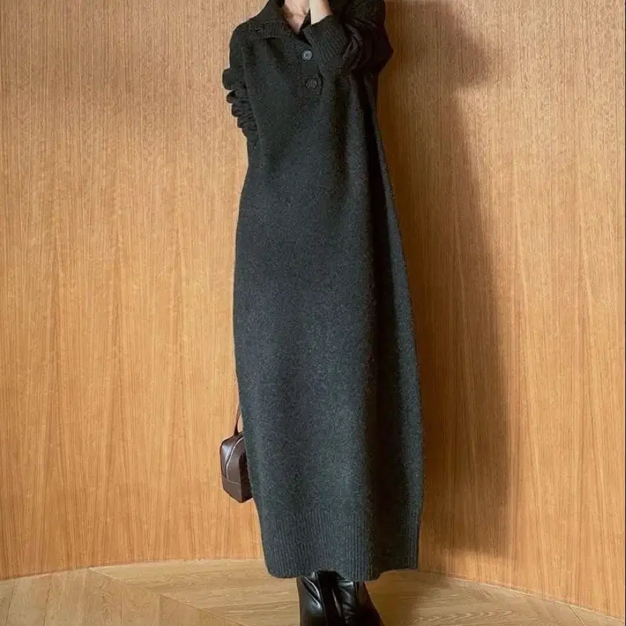 searoomlynn 2way 하이넥 Relax 니트 원피스 차콜