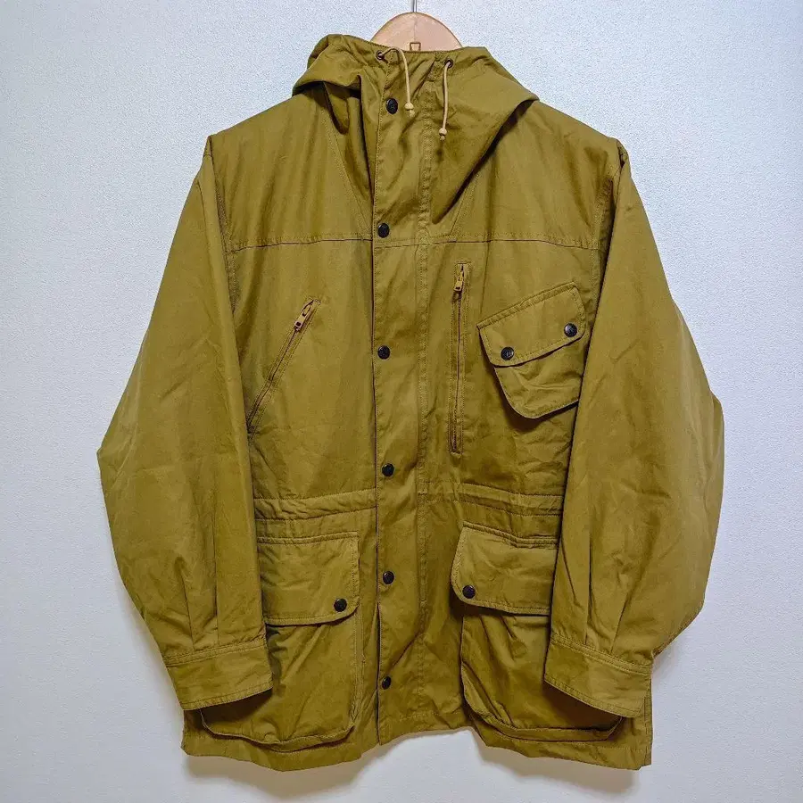 ARGYLE CLUB의 마운틴 파카입니다. 겉감과 안감 모두 코튼 100%이며, 특히 겉감은 초고밀도 원단인 벤타일 크로스를 사용하여 방수성, 방풍성, 투습성이 매우 뛰어난 소재입니다. 구제 의류 매장에서 구매 후, 실내에서 몇 번 가볍게 착용한 정도입니다. 다만 구매 당시부터 생각했지만, 택은 없지만 데드스탁에 가까울 정도로 상태가 좋습니다. 흠집이나 색 바램 등도 보이지 않습니다. 포켓 등에 사용된 벨크로 테이프도 다른 소재와의 엉킴 없이 매우 깨끗한 상태입니다. 냄새는 구제 의류 특유의 냄새가 배어 있으니 이 점은 양해 부탁드립니다. 하드한 아웃도어 유스를 염두에 두고 만들어졌으며, 포켓 수가 매우 많아 사용하기 편리합니다. ★ 벤타일 크로스 영국 공군 파이롯트용 내수복 소재로 개발된 고기능 소재 [VENTILE(벤타일)]. 섬세하고 초극세 코튼을 밀도의 한계까지 촘촘하게 짜 넣은 초고밀도 원단은 방수성, 발수성, 통기성, 투습성 등 뛰어난 고기능이 특징입니다. 물의 분자가 실과 실의 틈(섬유)을 통과할 수 없을 정도로 최고 밀도로 짜여 있기 때문에 물이 통과하지 않아 방수성이 뛰어납니다. 또한, 강한 바람이 불어도 바람이 섬유의 틈을 통과하지 못하므로 벤타일 원단의 의류를 입으면 바람이 새는 느낌은 들지 않습니다. 하지만 투습성 덕분에 내부의 증기는 외부로 잘 배출되므로 열이 너무 많이 쌓이지 않습니다. 천연 소재로 만들어졌기 때문에 코팅이나 합성섬유와는 비교할 수 없을 정도로 자연스러운 질감과 쾌적한 착용감을 실현하는 것도 특징입니다. ○ 상태: 구제 의류 (상태 매우 좋음 ◎) ○ 제조국: 일본 ○ 브랜드: 아가일 클럽 ○ 소재: 겉감 코튼 100% (벤타일 크로스), 안감 코튼 100% ○ 제조 연대: 1980년대 ○ 사이즈: 남성용 L 사이즈 (신장 170cm인 제가 입었을 때 적당히 릴랙스한 느낌) ○ 중량: 약 1.3kg 기장 78cm 가슴 너비 64.5cm 소매 길이 61cm 부디 검토해 주시기 바랍니다.