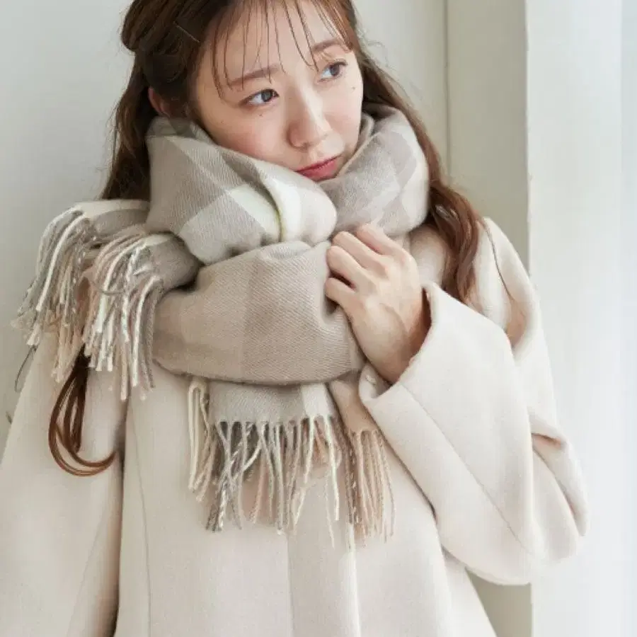 체크 무늬 프린지 스톨 브라운 마제스틱 레곤 양산