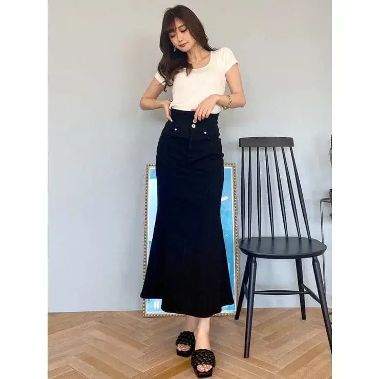 [ 새상품급 ] 머메이드 데님 스커트 블랙