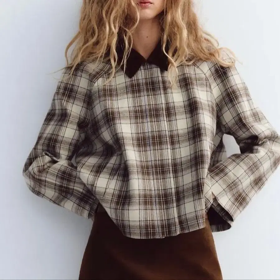 ZARA 체크 무늬 지퍼 블루종 짧은 기장 A라인 XS