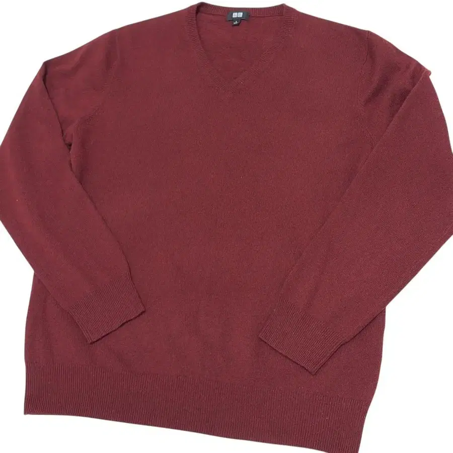 컨디션 최상 유니클로 캐시미어 V넥 스웨터 긴팔 버건디 남성용 L