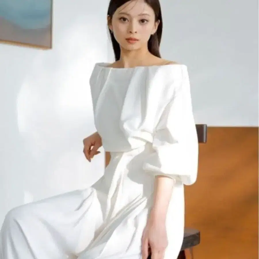 [ SNIDEL ] 오프숄더 턱 맨투맨 ( wht )