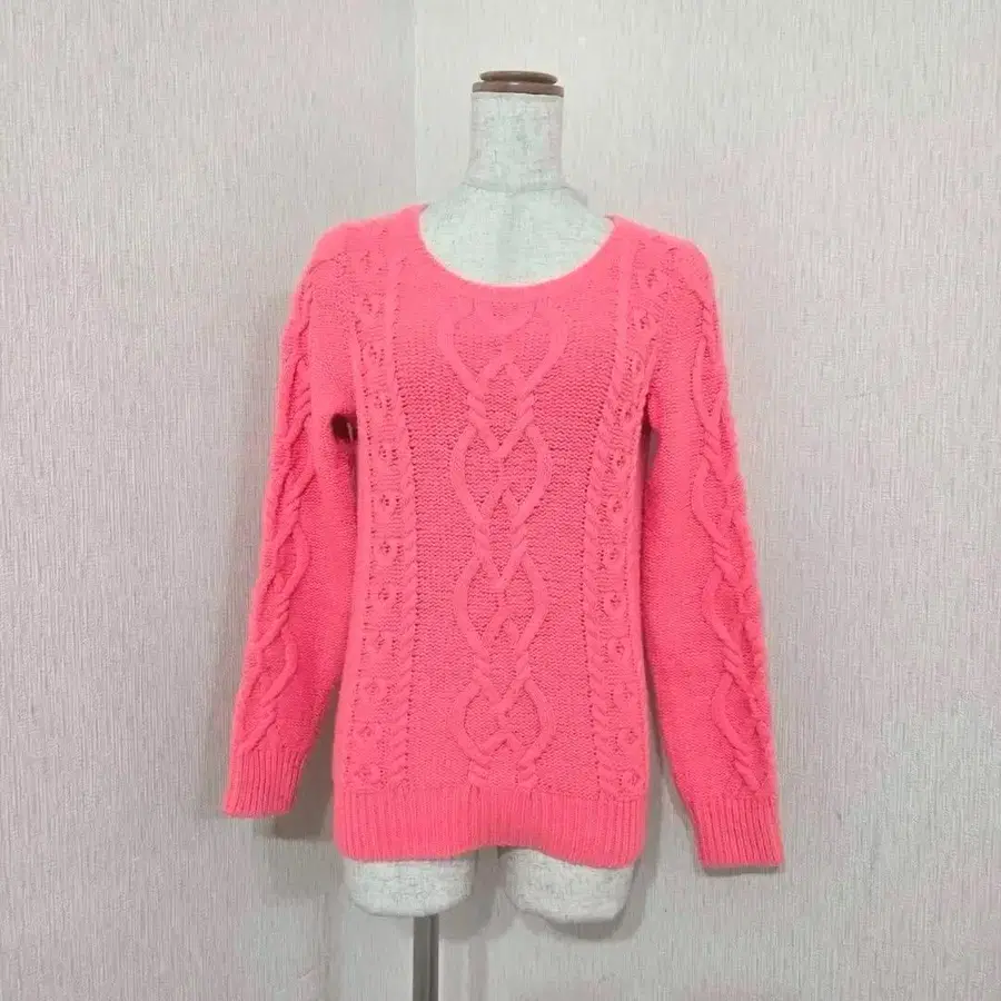 존재감 있는 케이블 짜임과 선명한 핑크 컬러가 특징인 니트. 심플하면서도 입체적인 디자인으로, 하나만으로도 포인트가 되는 아이템입니다. 부드럽고 두께감 있는 원단으로 가을/겨울에 딱 맞습니다. 소매와 밑단의 리브도 튼튼합니다. 약간의 사용감이 있지만, 전반적으로 양호한 상태입니다.
