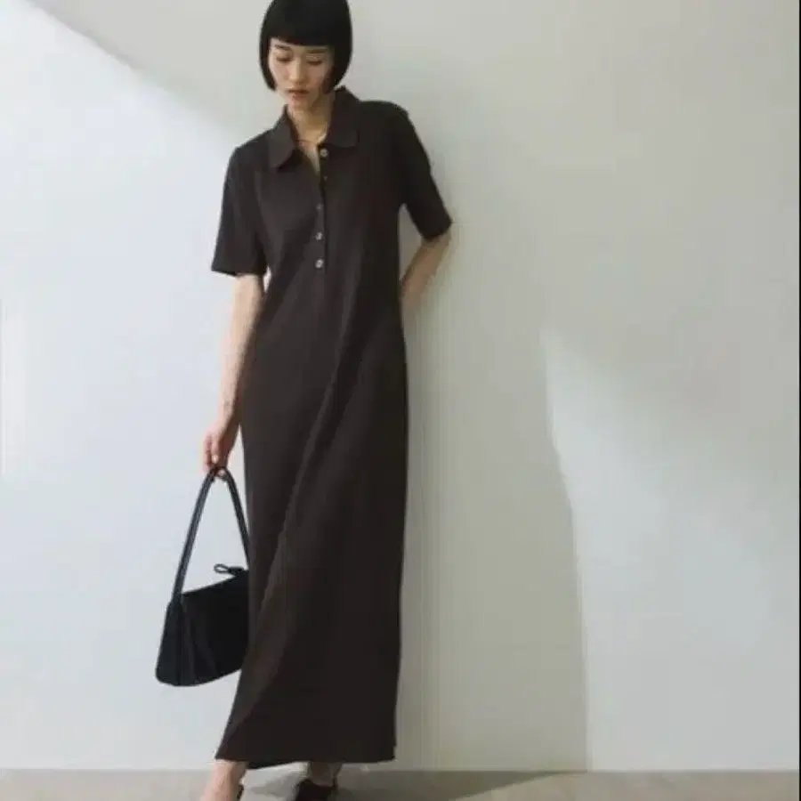 ADAM ET ROPE 하프 슬리브 폴로 셔츠 원피스 브라운