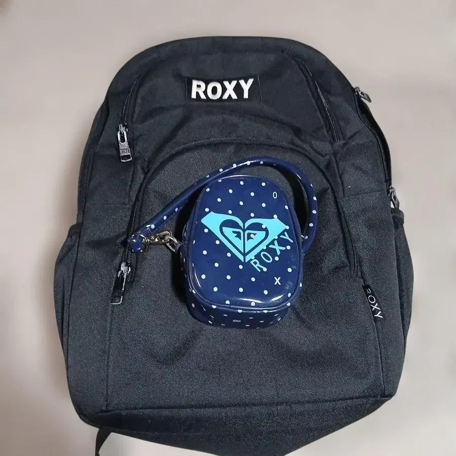 ROXY 블랙 백팩 도트 무늬 파우치 포함
