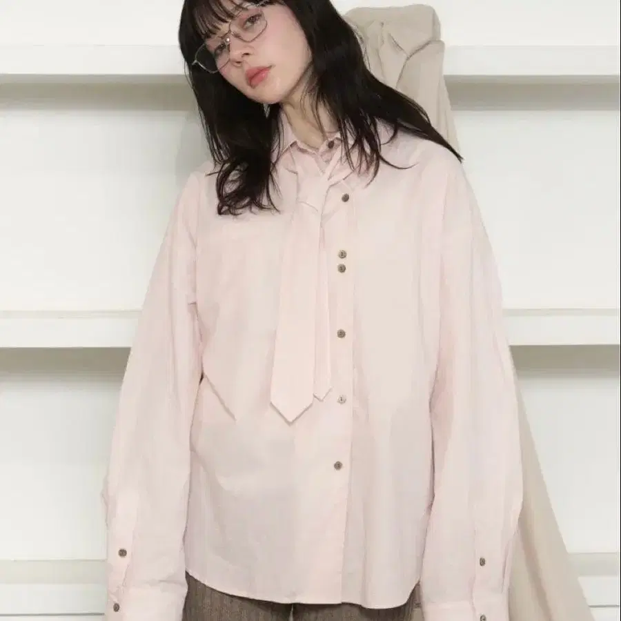 불규칙하게 배열된 쉘 느낌의 버튼과 트렌디한 타이 디자인 셔츠. 넥타이를 맸을 때 보이지 않도록 버튼 위치도 일부러 중심에서 벗어나게 하여 신경 썼습니다. 넥타이는 탈부착 가능하므로, 착용하거나 하지 않고도 입을 수 있는 멀티 웨이 사양. 오버사이즈로 와이드 커프스 실루엣으로 완성했습니다.