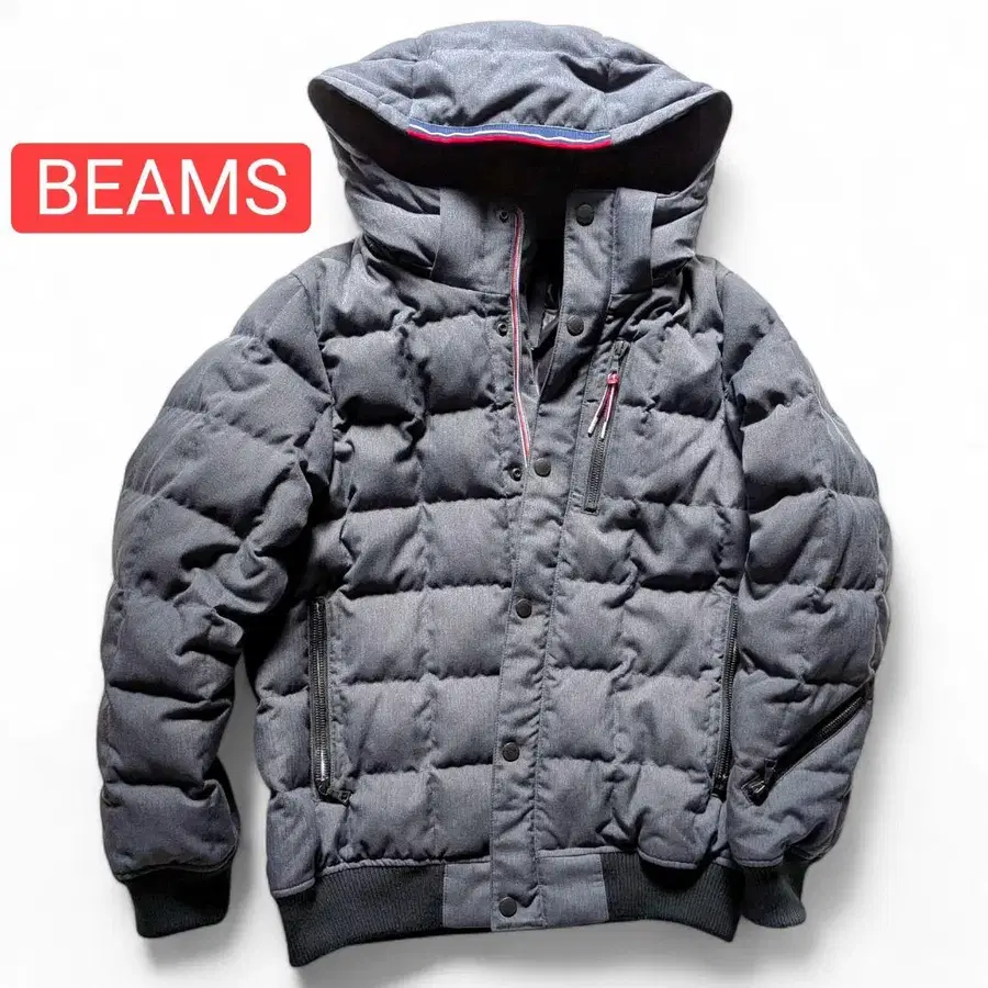 BEAMS 다운 자켓 후드 있음 그레이 숏 기장
