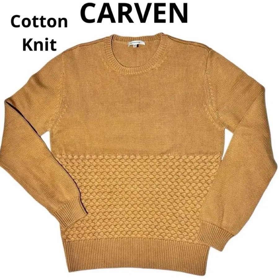 칼벤 코튼 니트 바스켓 패턴 크루넥 타이트 실루엣 새상품급