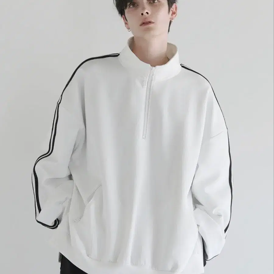 루즈 실루엣 코튼 분또 드레이프 트랙 하프 지퍼 긴팔 풀오버