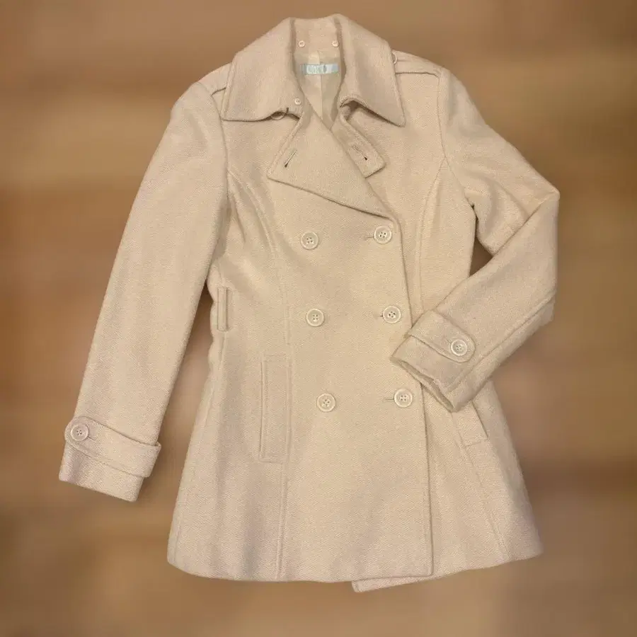 울 더블 브레스트 피 코트 베이지