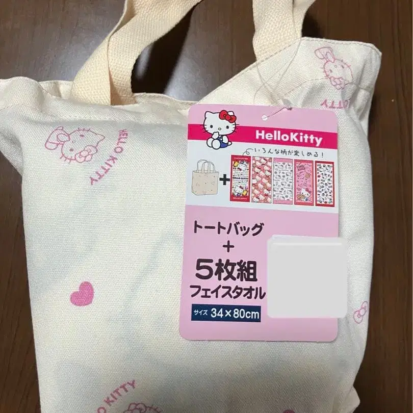 헬로키티 페이스 타월 5개 세트 토트백 포함