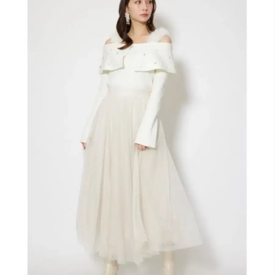 리엔다 데코레이션 튤 플레어 스커트 화이트 S