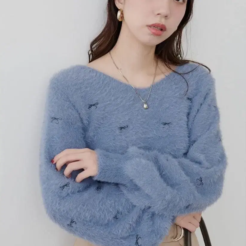 내추럴 꾸뛰르 리본 자수 페더 니트 미사용 새상품