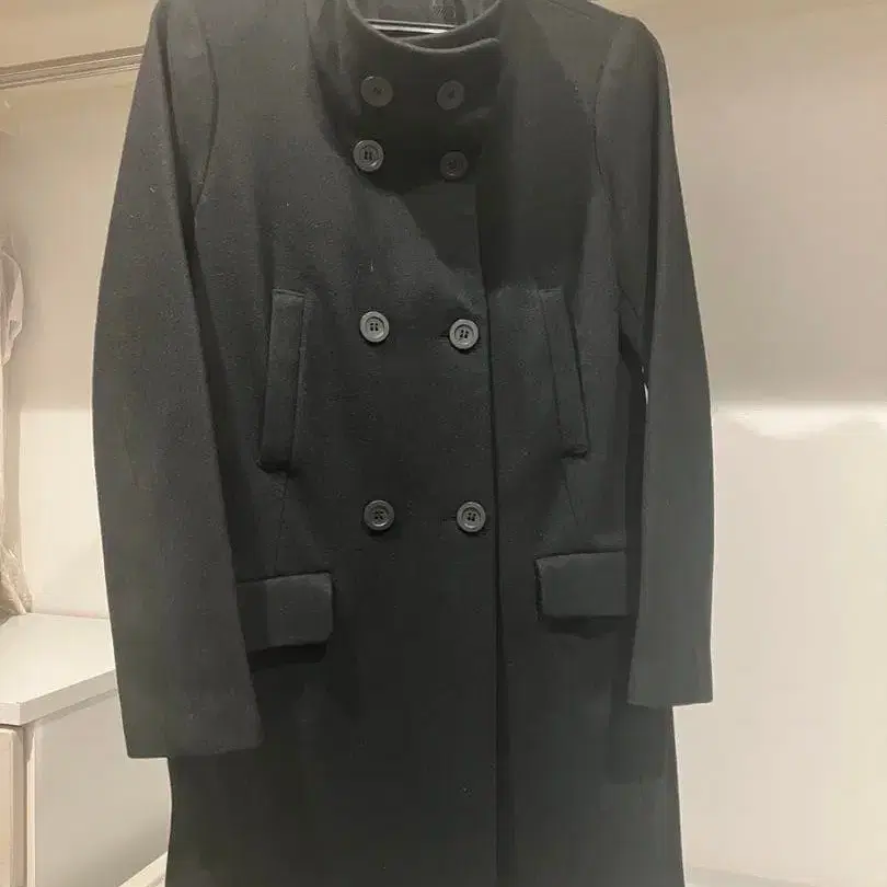 UNIQLO 블랙 더블 브레스트 롱 코트