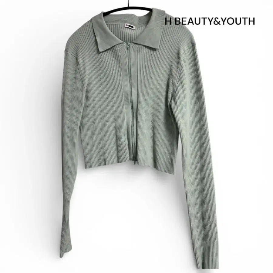 [중고품] H BEAUTY&YOUTH 카라 부착 리브 편직 가디건