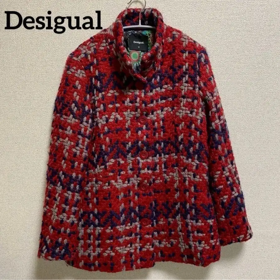 데시구알 Desigual 스텐카라 코트 울 안감 꽃무늬 트위드 직조