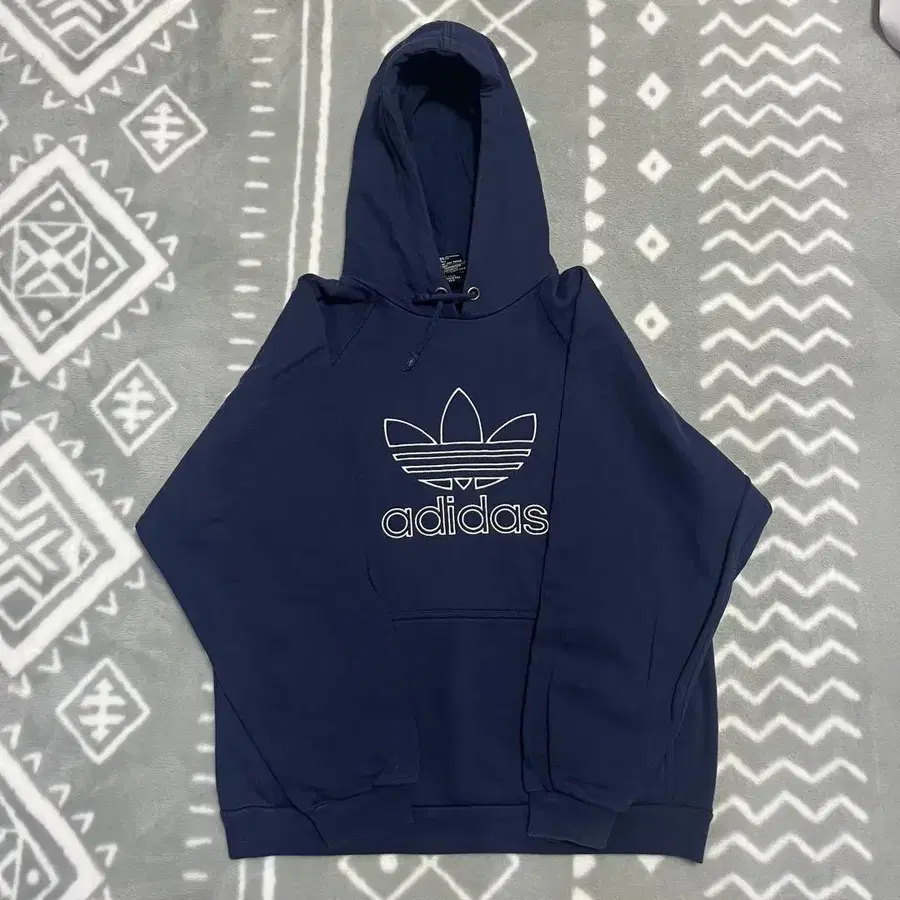 90s 아디다스 트레포일 자수 로고 후드티 네이비 L