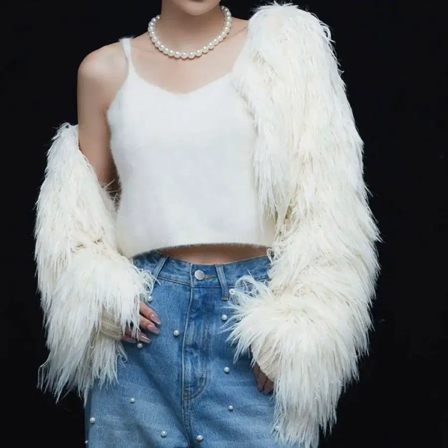 퍼 니트 가디건 아이보리