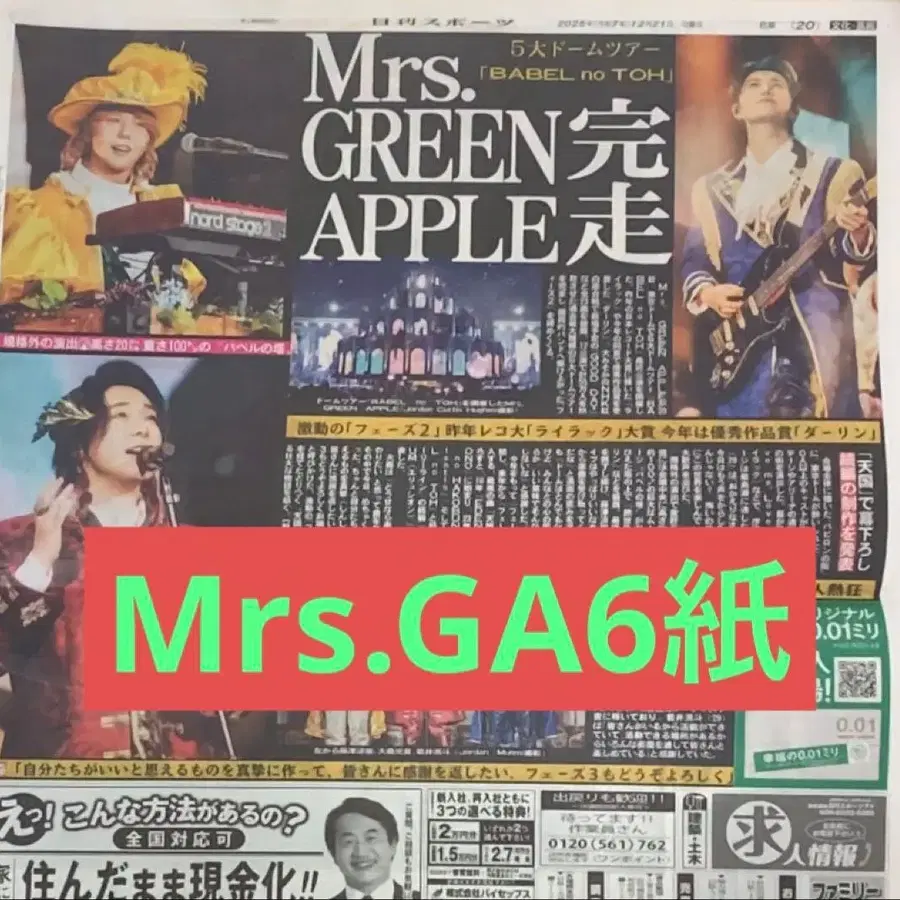 Mrs.GA 돔 투어 완주 스포츠 신문 6개 지면 전부 새상품 12월 21일