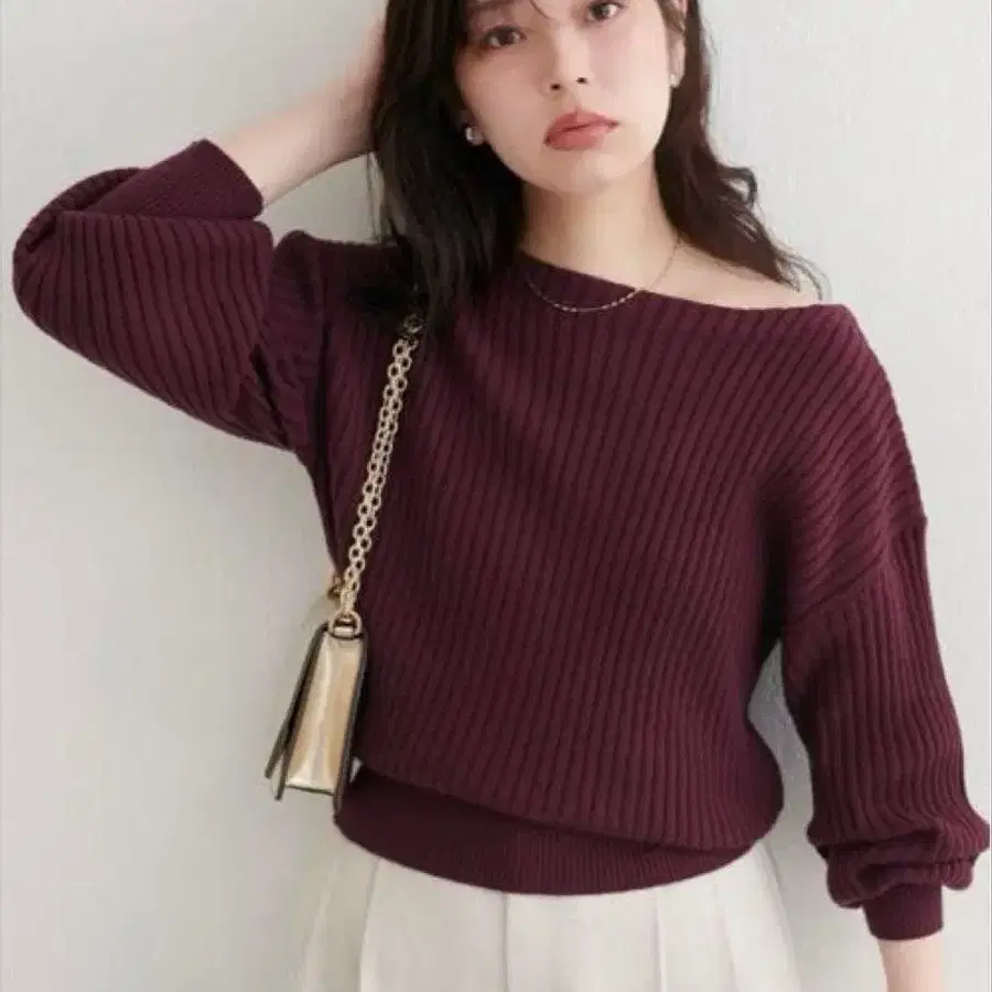 내추럴 꾸뛰르 촉촉 와이드 리브 퍼프 소매 니트 미사용 새상품