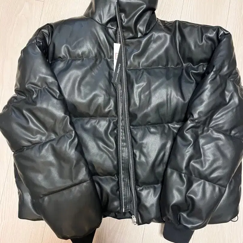 HALHAM 블랙 가죽 다운 자켓
