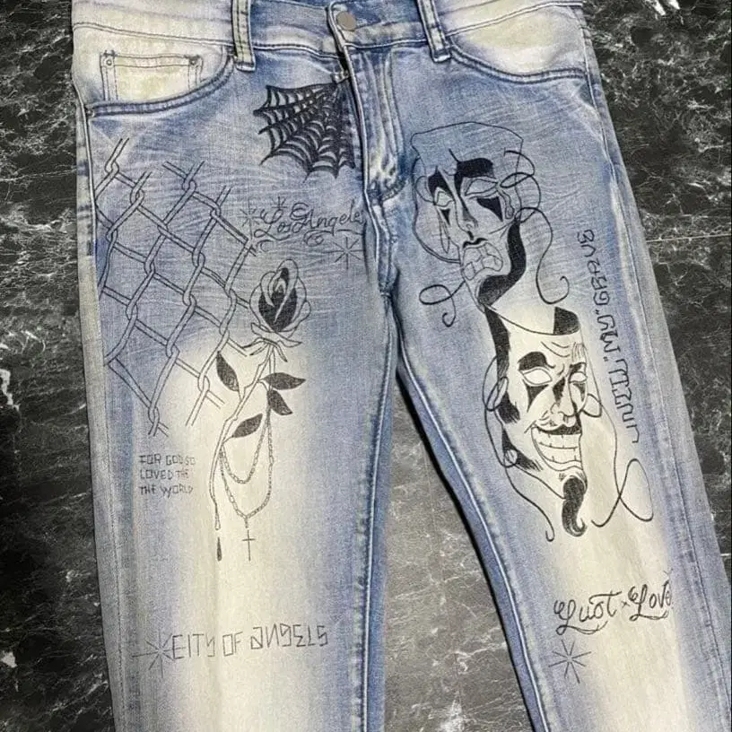 미니멀 데님 청바지 29 타투풍 프린트 데님 팬츠