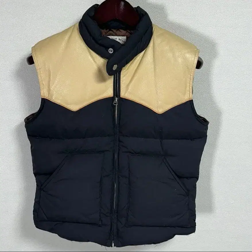 플랫 헤드 다운 베스트 아메카지 바이커 가죽 블랙