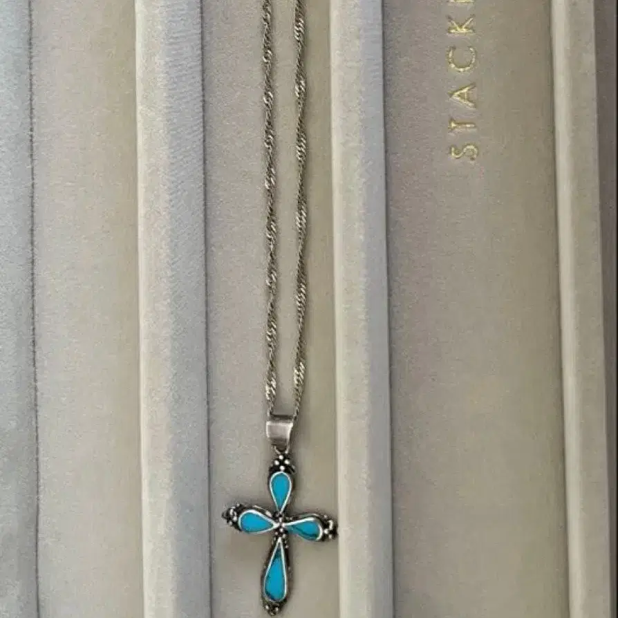 터콰이즈 크로스 목걸이 실버925
