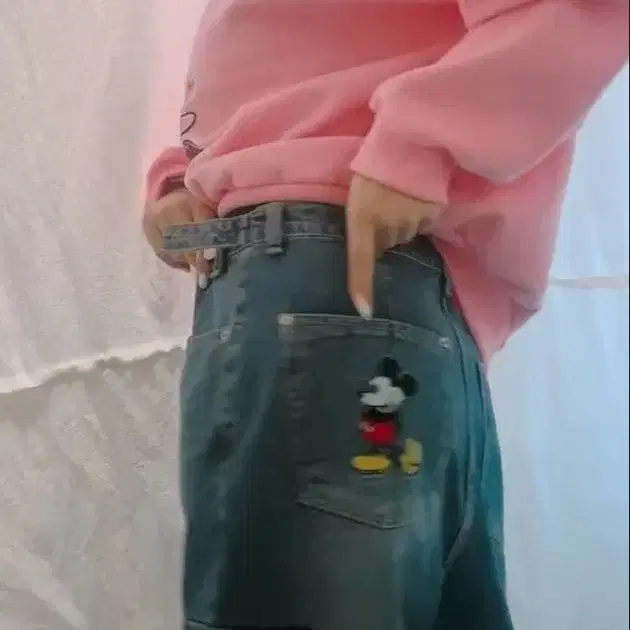 LINK@ 원포인트 미키마우스 자수 데님 청바지 링크앳 한국