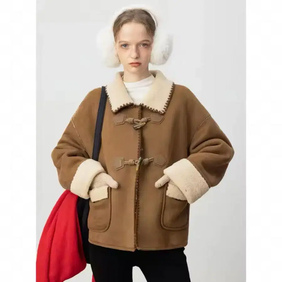 EGGKA 페이크 스웨이드 시어링 트림 토글 자켓