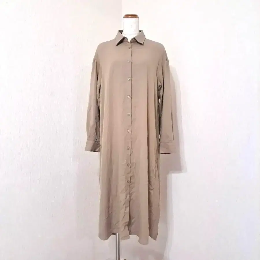 그레이지 색상으로 어떤 스타일에도 맞추기 쉬운 심플한 롱 셔츠 원피스